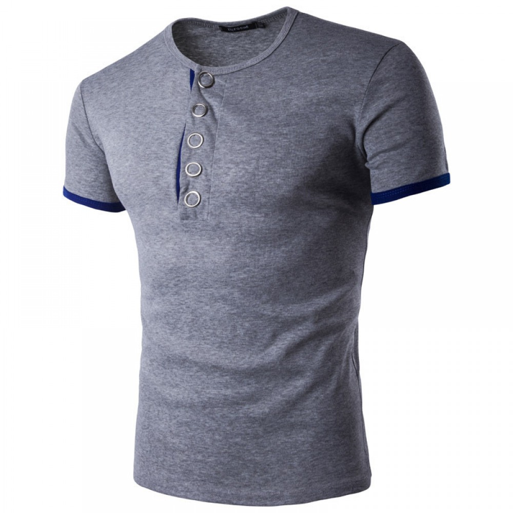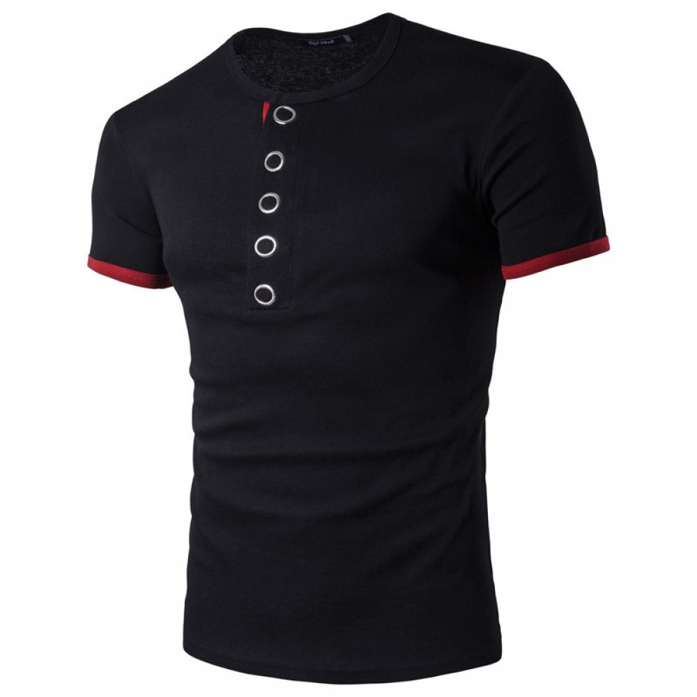 Fall and Winter New Men's Personality Big Press Button Hit Color Short-Sleeved Bottoming T-Shirt Casual Shirt Hot Sale