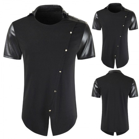 Fashion Personality Casual Simple Men's Plus Size Fight Leather T-Shirt Long-Sleeved Mid-Length