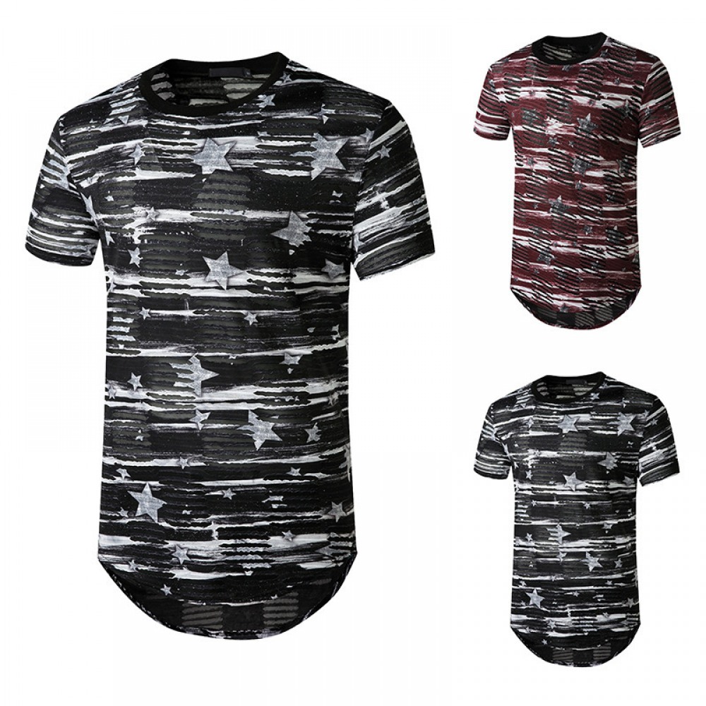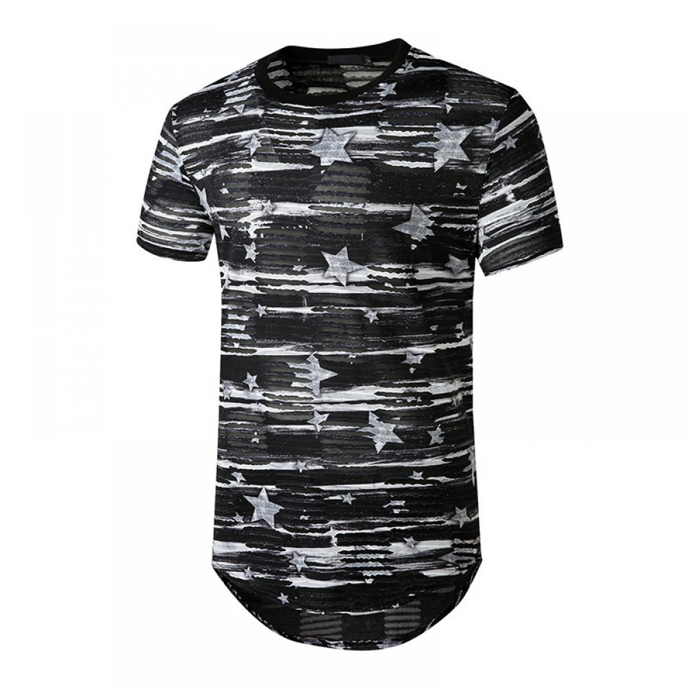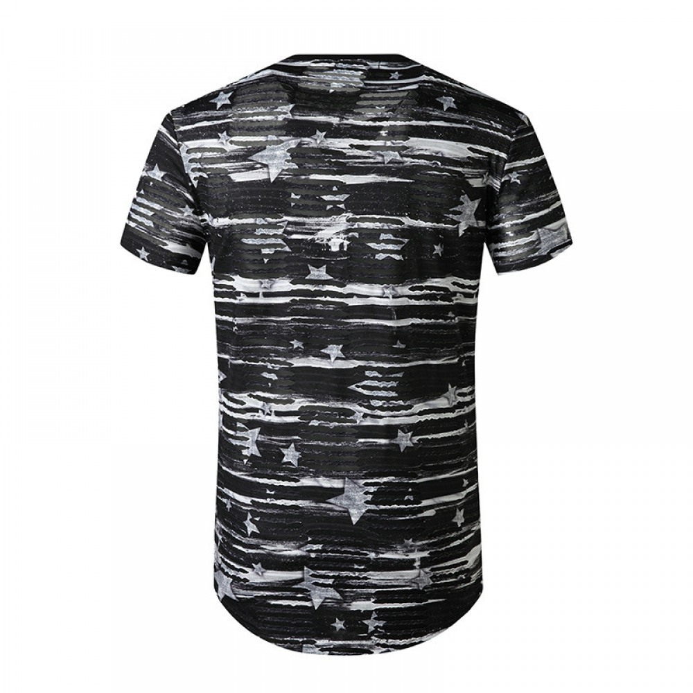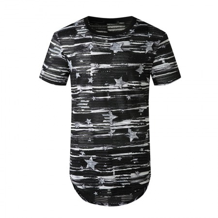 New Men's Plus Size Open Smile Torn Hole Short-Sleeved Hipster Hip-Hop T-Shirt