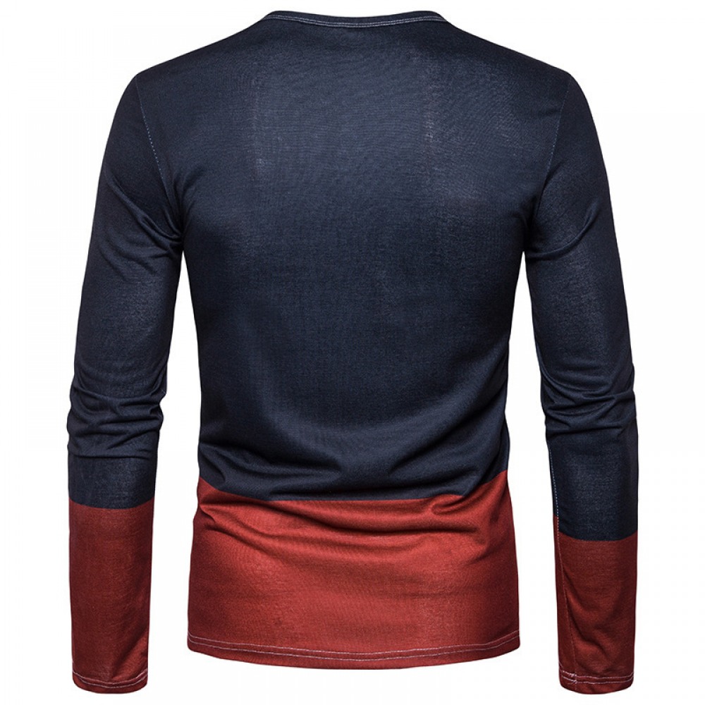 New Style Men's Fashion Hit Color 3D Digital Printing Long Sleeve Round Neck T-Shirt