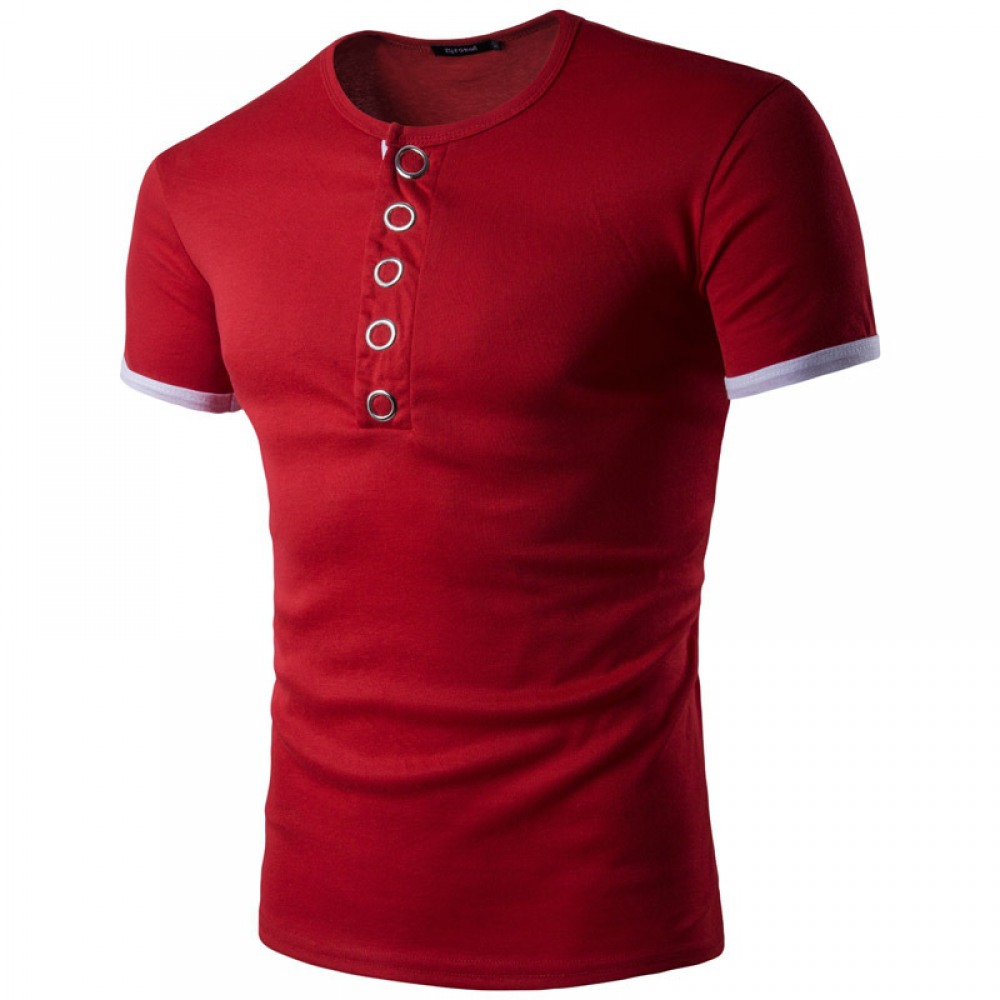 Fall and Winter New Men's Personality Big Press Button Hit Color Short-Sleeved Bottoming T-Shirt Casual Shirt Hot Sale