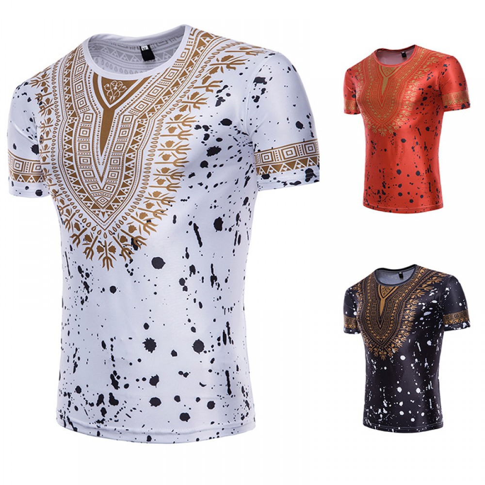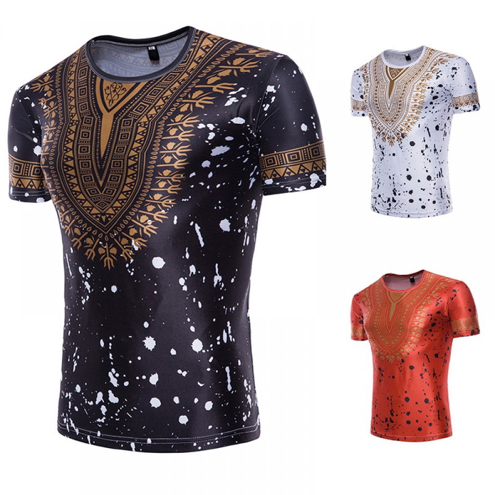 Fashion Male Creative Ethnic Style Floral 3D Printing Short Sleeve T-Shirt