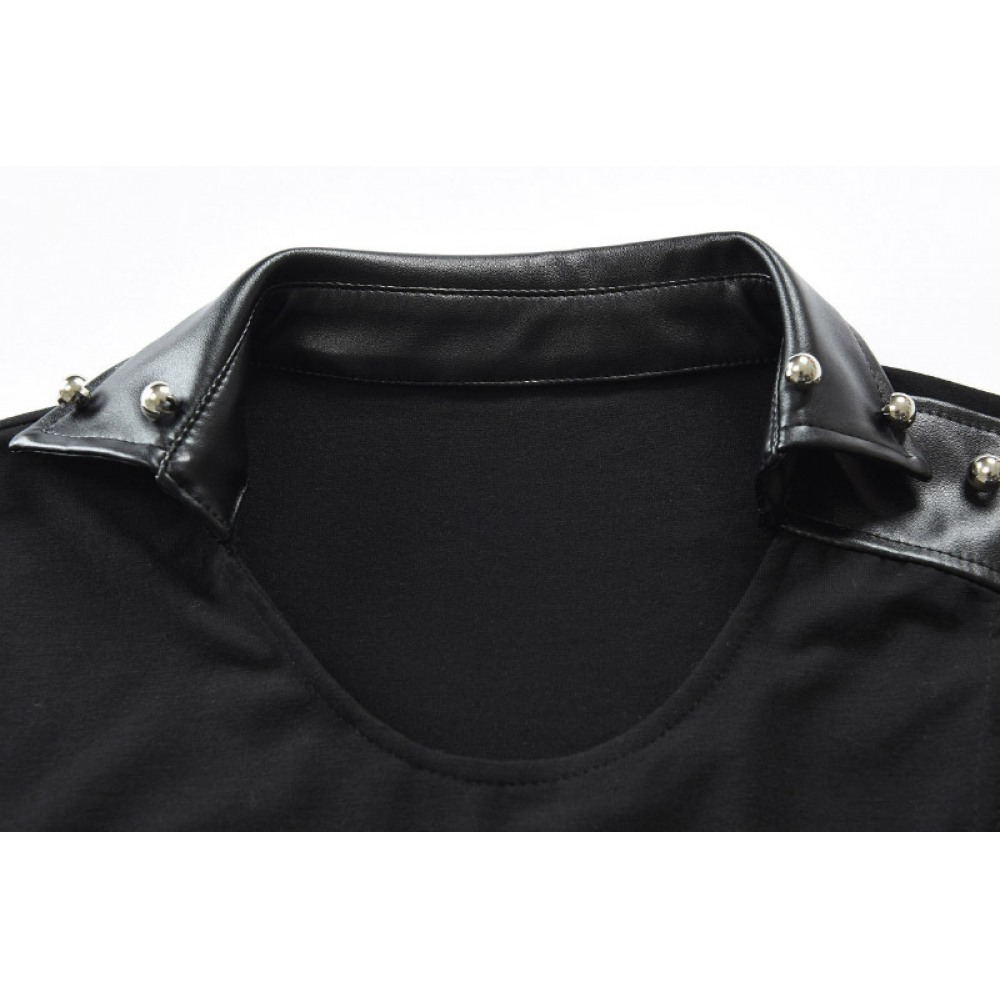 Fashion Personality Casual Simple Men's Plus Size Fight Leather T-Shirt Long-Sleeved Mid-Length