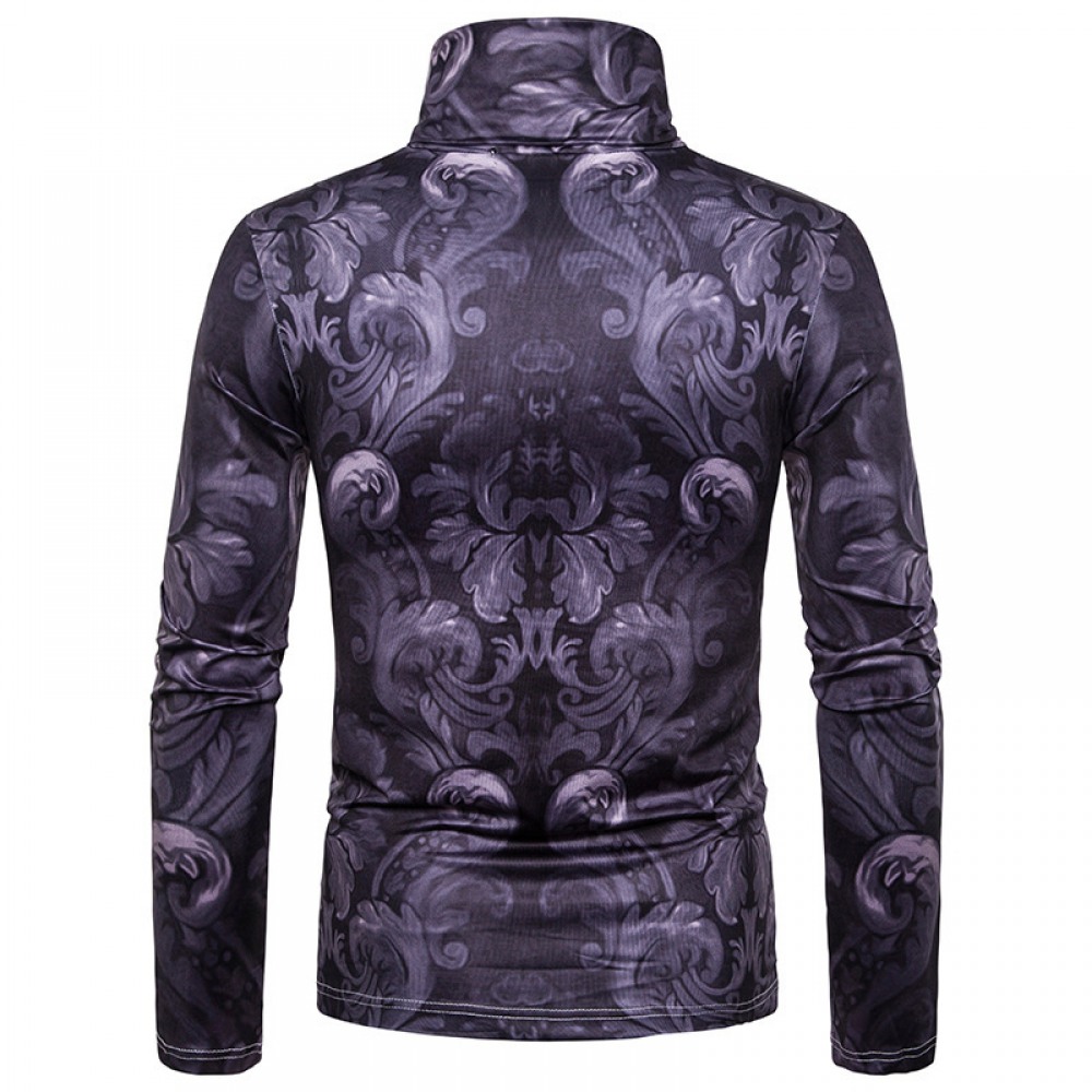 New Men's Plus Size 3D Duke Dog Pattern Printing High Neck Long Sleeve T-Shirt Bottoming Shirt