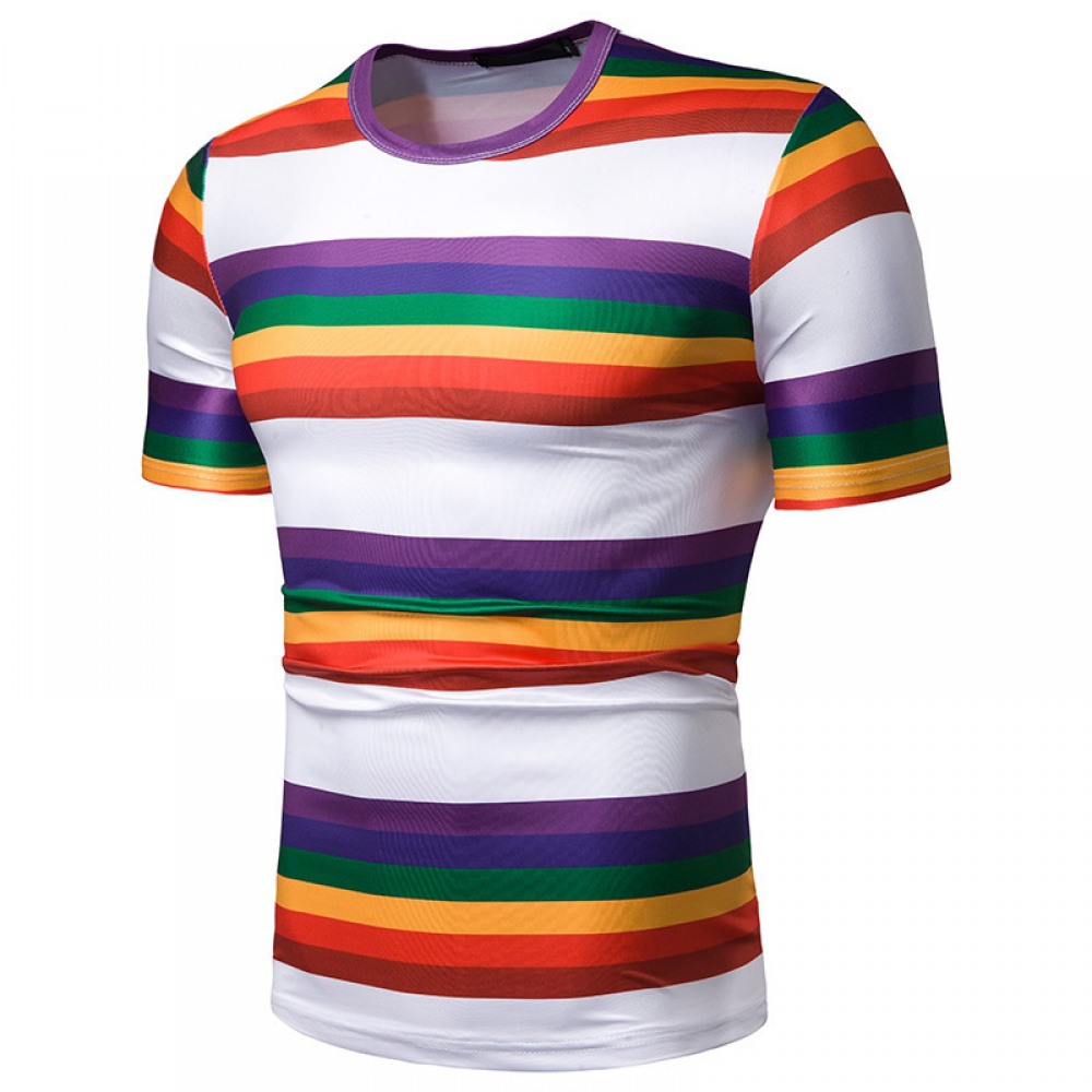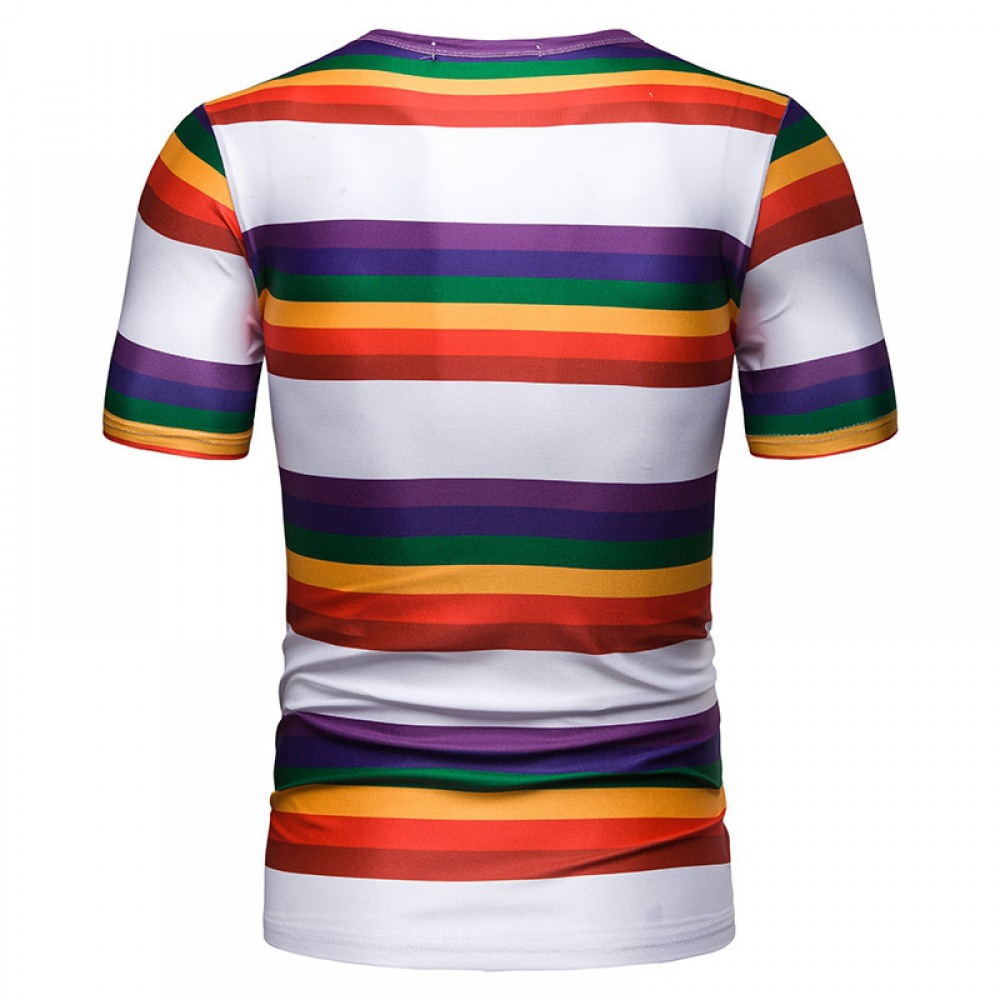 New Summer Men's Short-Sleeved T-Shirt Contrast Striped Slim Casual T-Shirt